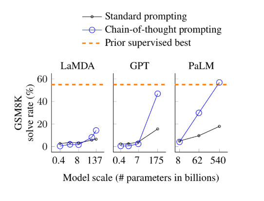 Le fait de laisser un peu de temps aux LLM pour réfléchir a eu un impact considérable sur les performances pour certains types de problèmes. Les chercheurs ont testé cette approche avec GSM8K, un ensemble de problèmes mathématiques destinés aux élèves du primaire, et ont constaté une augmentation considérable des performances. Le CoT a également permis d'améliorer les performances sur des ensembles de données de raisonnement de bon sens et de raisonnement symbolique.